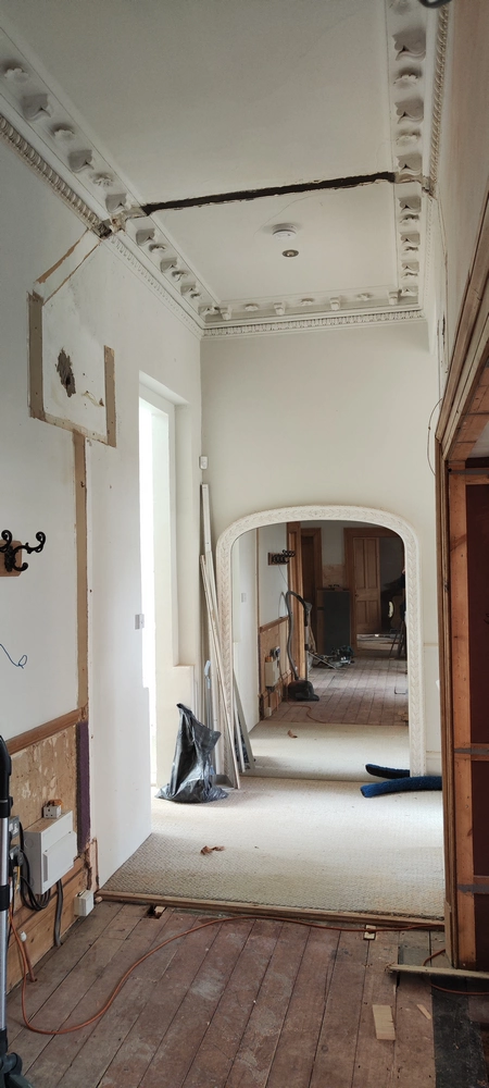 As part of a ground-floor renovation in this terraced home, the brief was to maximise natural light while retaining warmth and acoustic separation. Existing walls were removed to open up the living space, with bespoke steel glazing used to define areas without closing them off.
