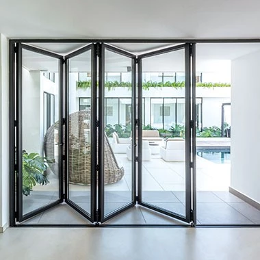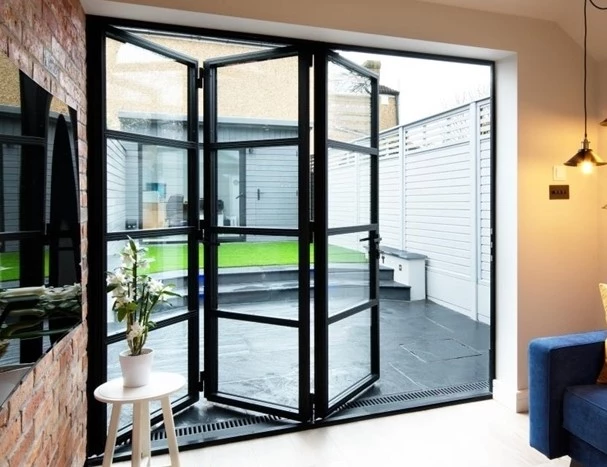 Bifolding steel doors offer a perfect fusion of industrial charm and contemporary functionality. These steel doors feature slim, steel-framed panels that create a seamless transition between indoor and outdoor spaces. The bifolding mechanism adds a dynamic element, allowing the doors to neatly fold away, maximizing openness and versatility.