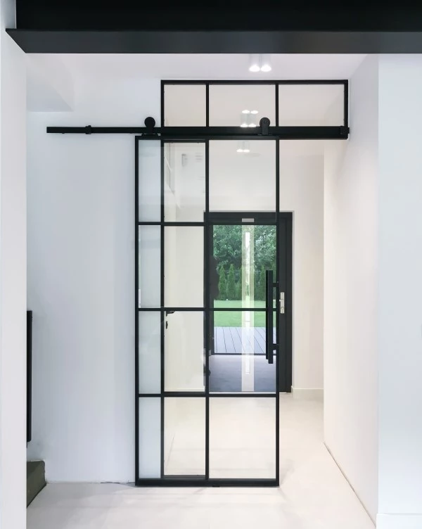 They can be sliding single black steel doors, sliding double-steel